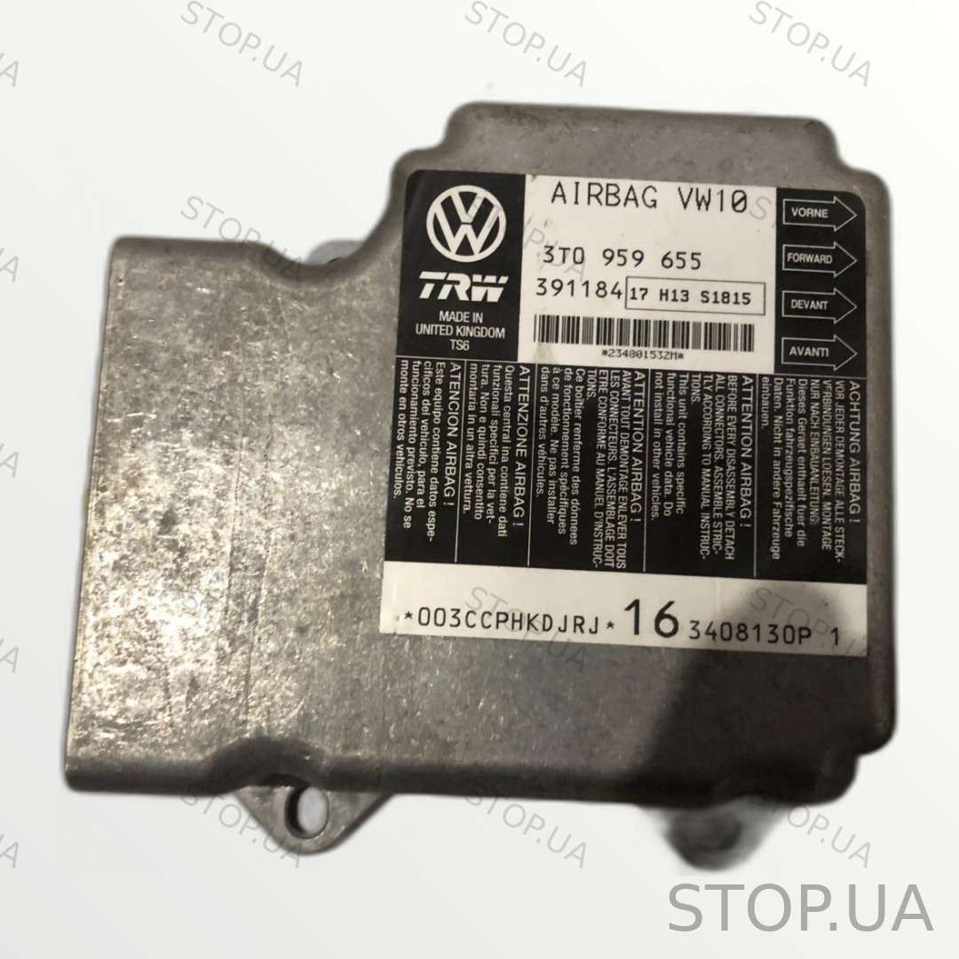 блок управления подушками безопасности, модуль airbag, блок SRS, Блок управления подушками безопасности Skoda Superb 2 08-15 SKU 3T0959655, подушки безопасности, электронный блок подушек, контроллер airbag, блок безопасности, модуль управления подушками, запчасть Skoda, автозапчасти Superb, блок подушек безопасности, SRS модуль, безопасность автомобиля, оригинальная запчасть
